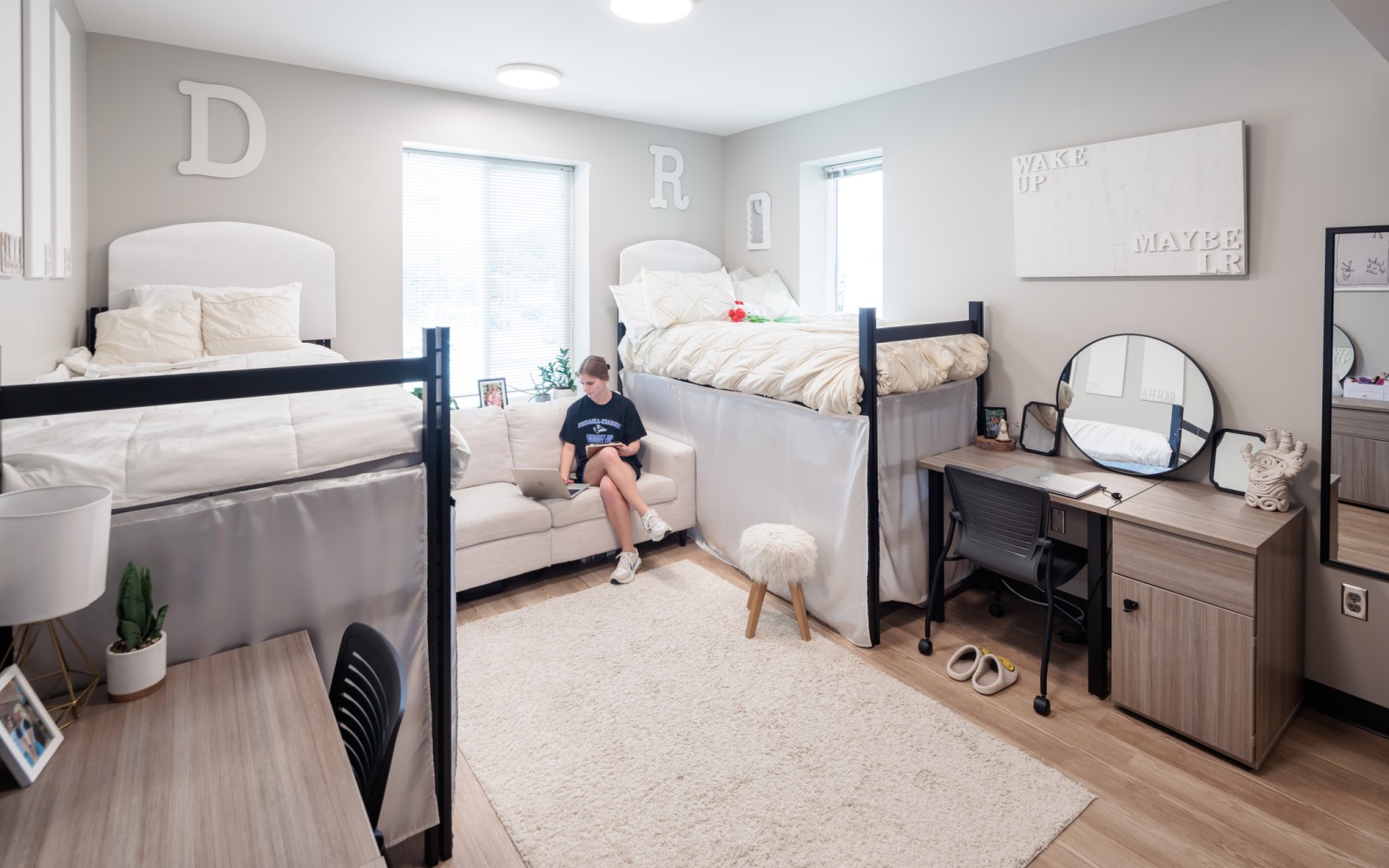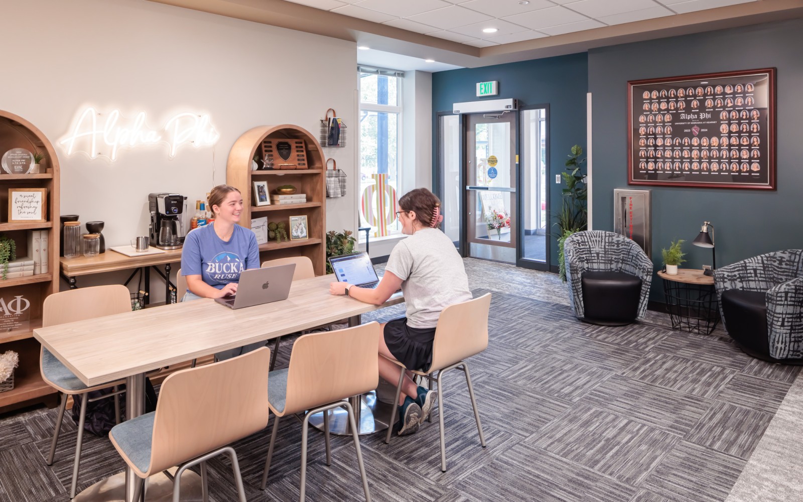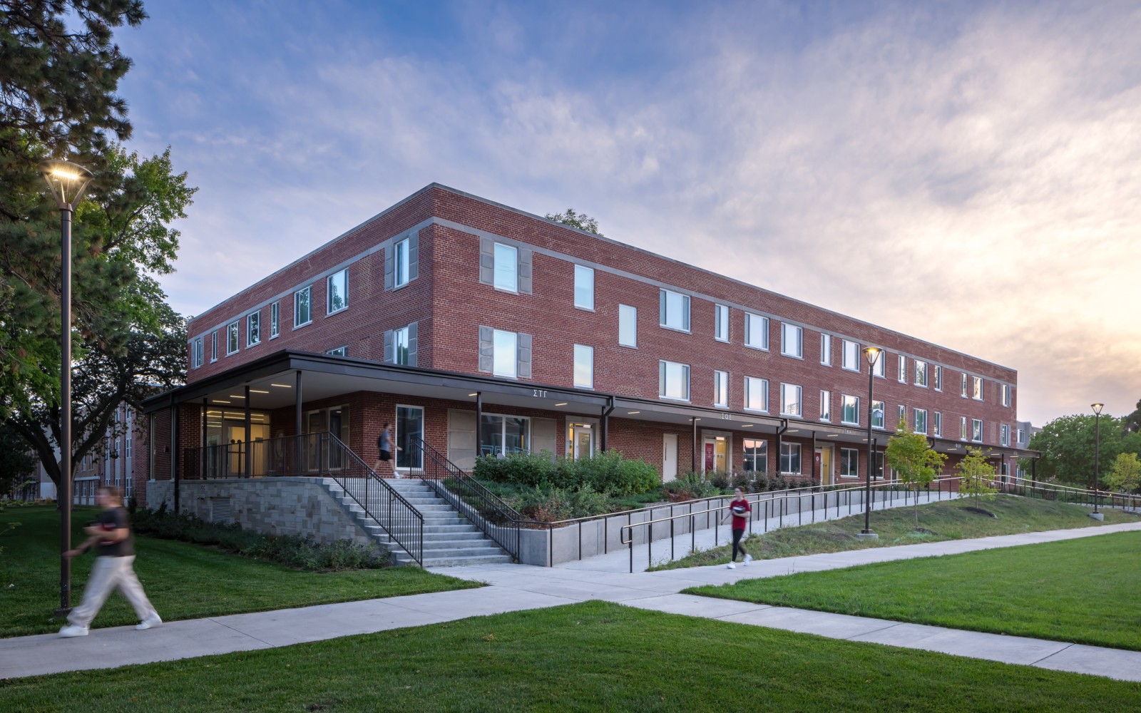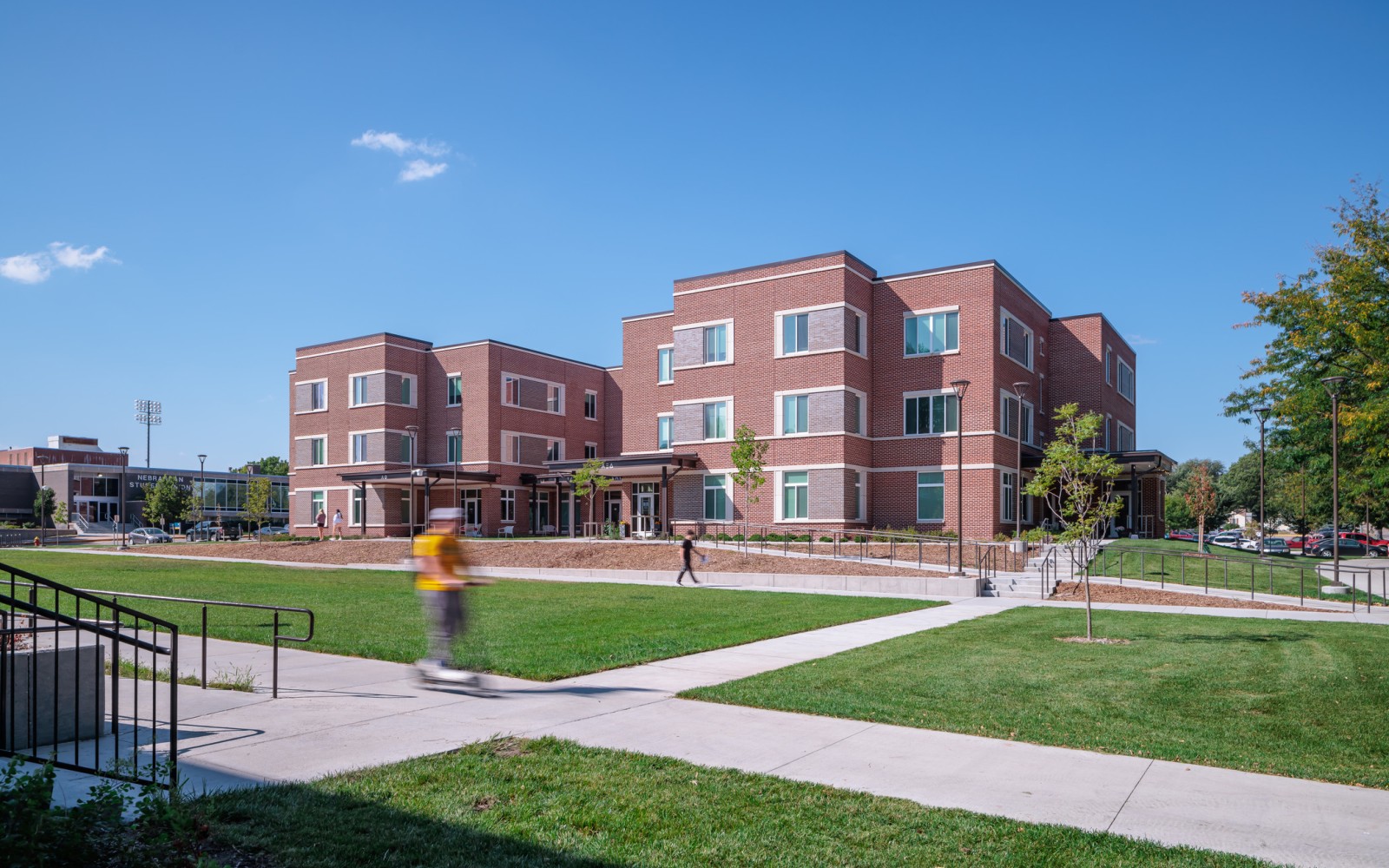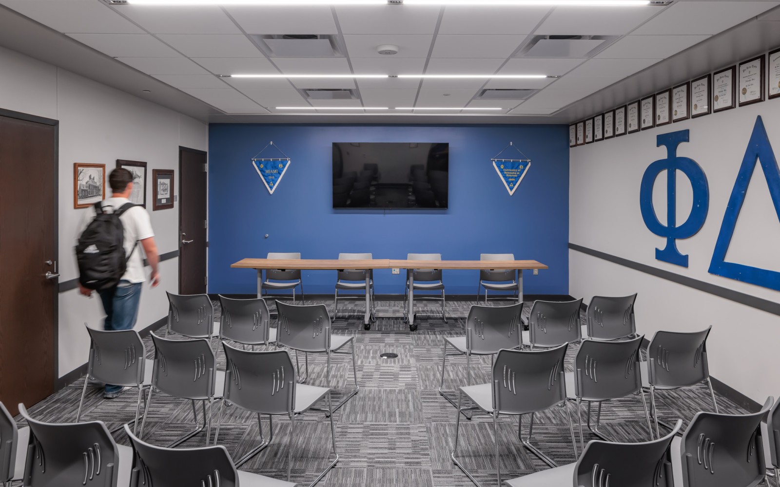 Located at the edge of campus, Martin Hall and the new building will be positioned across from each other, creating a campus green with outdoor space and extending the union plaza. The facilities are designed to allow flexibility and variability in chapter sizes. Each FSL chapter will contain traditional double dorm rooms, one single unit (ADA), group restrooms, large lounge, small lounge, and study room.